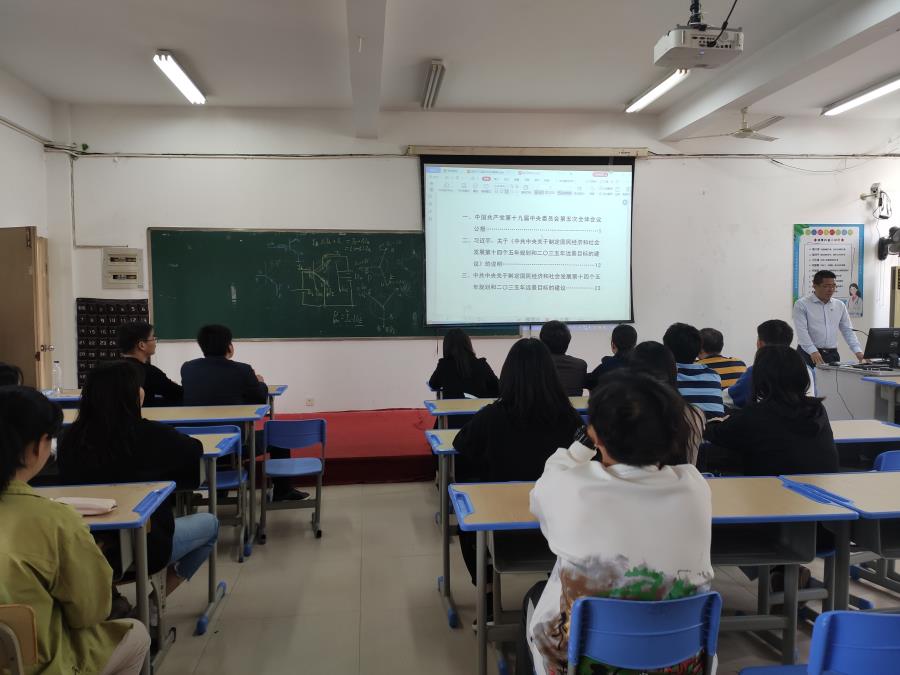 教工支部书记陈金民:这次全会提出了到二〇三五年基本实现社会主义现代化远景目标,提出了“十四五”时期经济社会发展的指导思想、遵循原则和主要目标。这是我党统筹中华民族伟大复兴战略全局和世界百年未有之大变局,深刻认识错综复杂的国际环境带来的新矛盾新挑战,保持战略定力,树立底线思维,善于在危机中育先机、于变局中开新局,谋划未来的远见卓识和继往开来的历史担当。“这对于动员和激励全党全国人民同心同德,顽强奋斗,夺取全面建设社会主义现代化国家新胜利具有重大而深远的意义。