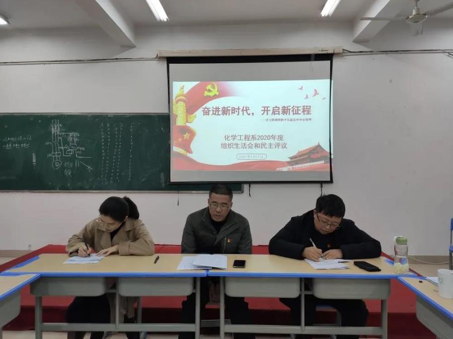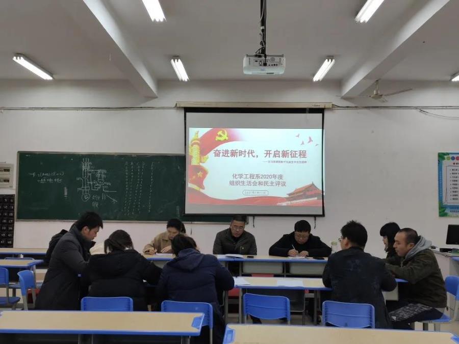 为了强化全体教师的凝聚力和战斗力,营造风清气正、积极向上的工作环境,让党员干部在工作和生活中真正起到模范带头作用,化学工程系严格按照学院统一部署要求,认真学习党的十九届五中全会精神、《习近平谈治国理政》第三卷和习近平总书记在全国抗击新冠肺炎疫情表彰大会、纪念中国人民志愿军抗美援朝出国作战70周年大会、全国劳动模范和先进工作者表彰大会、中央经济工作会议上的重要讲话、学习贯彻习近平总书记对福建工作的重要指示批示精神、《党章》、《中共中央关于加强党的政治建设的意见》、《关于巩固深化“不忘初心、牢记使命”主题教育成果的意见》和我省实施方案以及省委十届十一次全会、经济工作会议精神等。广泛征求党内外群众意见、深入查摆问题、充分谈心谈话等前期工作的基础上,于1月16日下午组织教工党支部和学生党支部全体教师党员联合召开“奋进新时代,开启新征程——学习贯彻党的十九届五中全会精神”专题组织生活会。