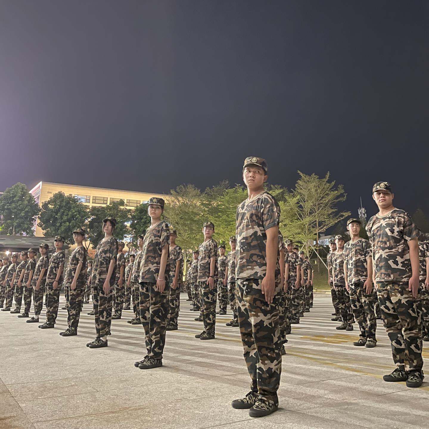 白天,这一群穿着迷彩服的少年汗如雨下,如棵棵小白杨在绿茵场上傲然挺立,眼中闪烁着青春的光芒。夜晚,这一群意气奋发的少年努力歌唱,感受军营生活的热烈美好。他们明白,军训不只是辛苦与艰难,同时也夹杂着自己快乐的蜕变和成长。