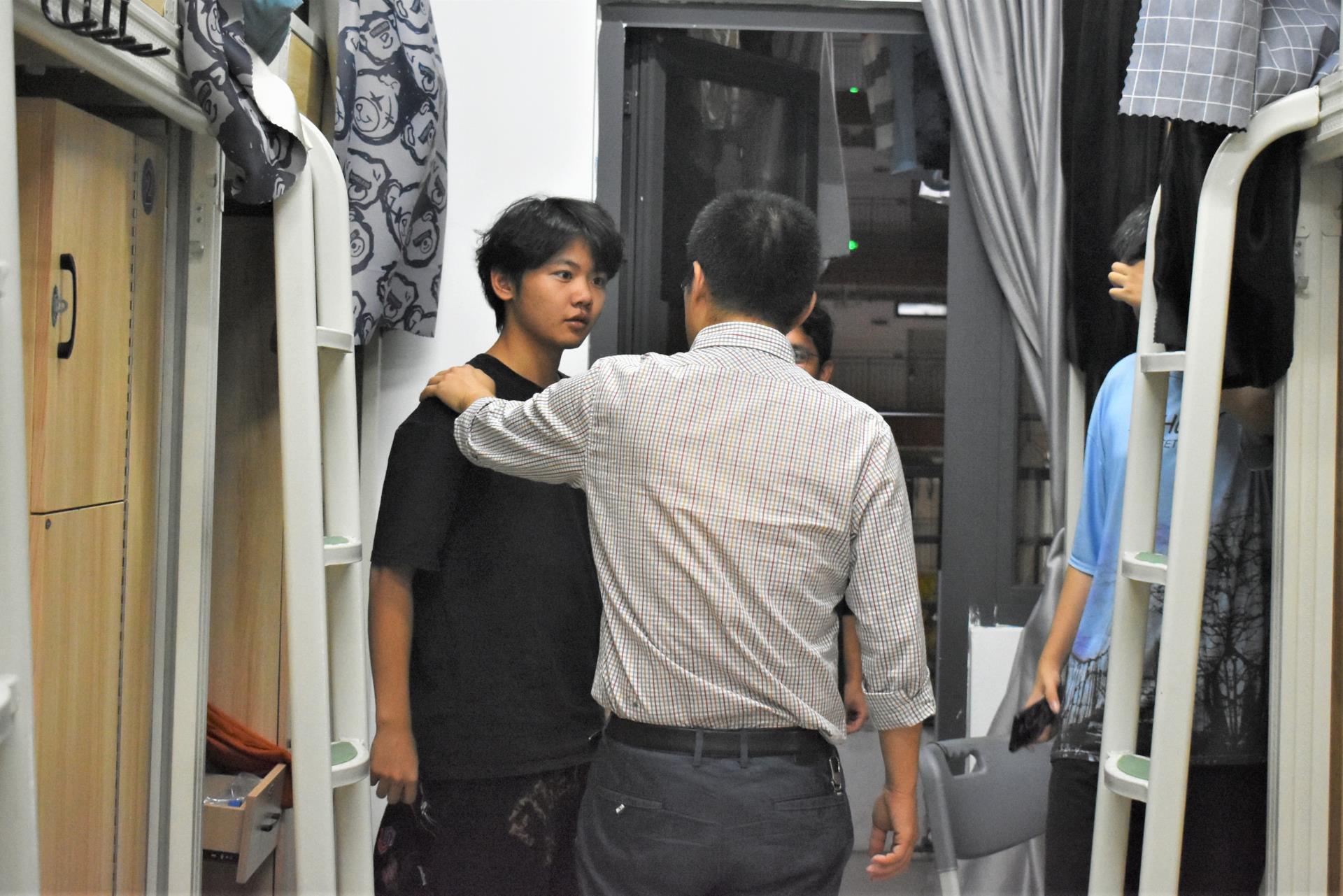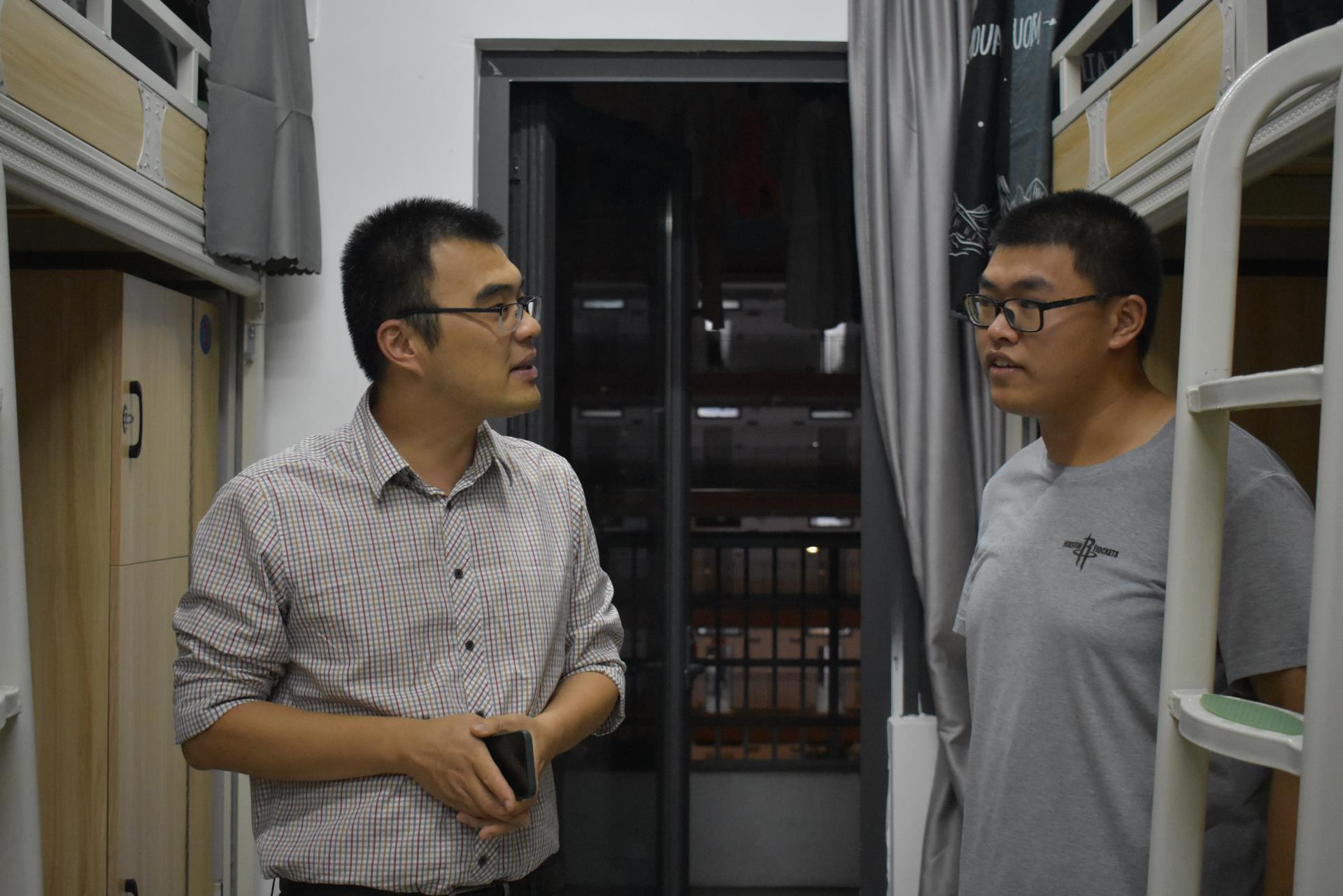 走访中,黄林毅书记和同学们进行交谈,关切地询问同学们的思想、学习、生活状况,叮嘱大家要严格遵守学院疫情防控要求和校规校纪,提高疫情防控责任意识,做好个人防护,养成良好的生活作息习惯。交谈中黄林毅书记强调同学们要在意识上重视宿舍环境卫生,定期做好打扫、通风、消毒工作。并叮嘱同学们要团结、互助,注意安全用电,增强宿舍财物保护等安全意识。