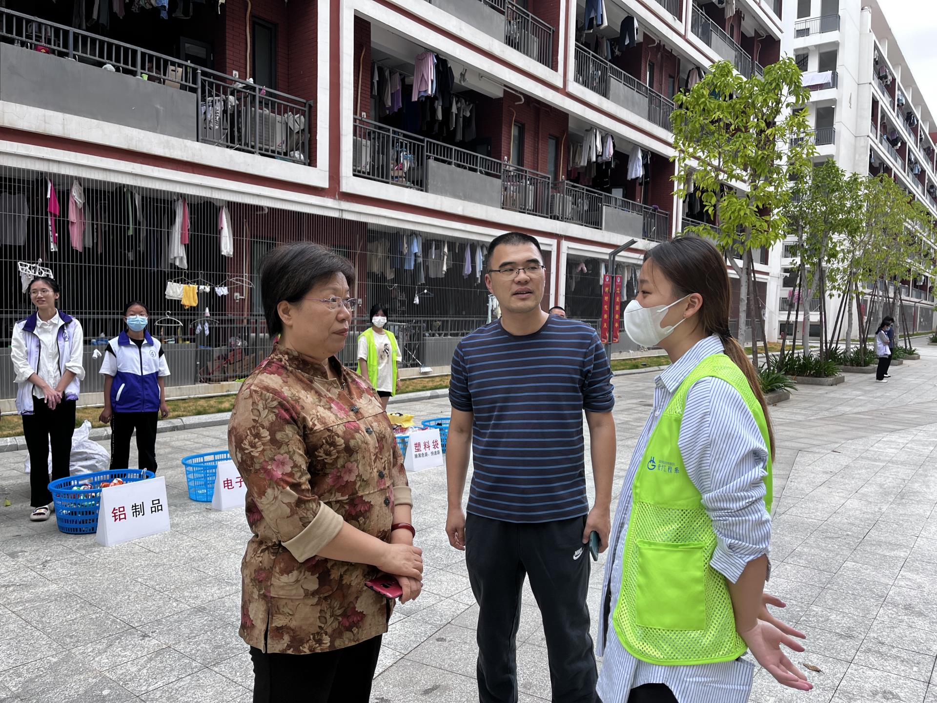 学院许冬红院长和系书记黄林毅也来到了垃圾分类的现场,倡议大家要一起参与到垃圾分类的行动中,让生活垃圾分类成为学院和师生日常生活中的自觉行动,志愿者们要通力合作,加强宣传和组织力度,不断巩固和扩大垃圾分类工作成果。