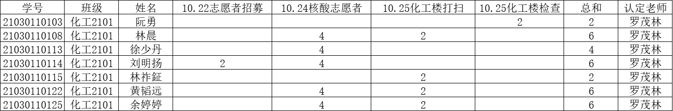 化学工程系10月份(10月22日~10月30日)志愿时长认定表来咯~