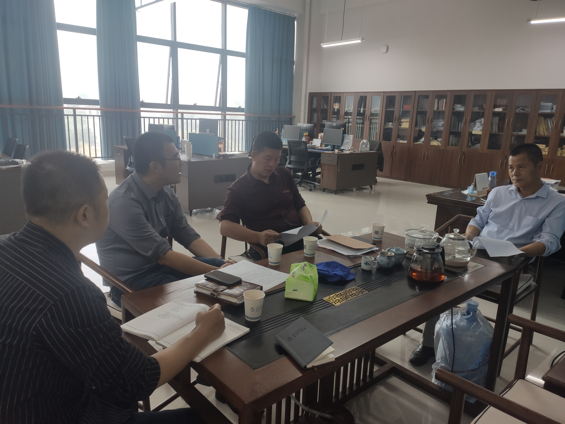 11月15日上午,学院纪委书记张凡带领纪检办等相关人员莅临我系调研院系重点工作进展情况。系领导赖国新、黄林毅参加座谈。