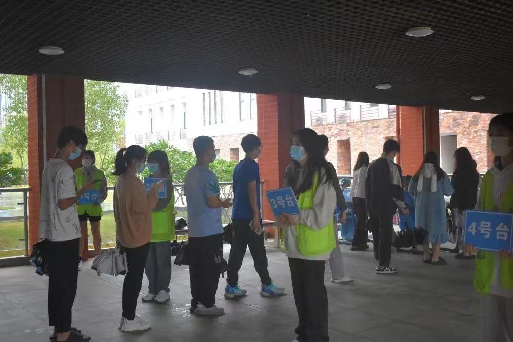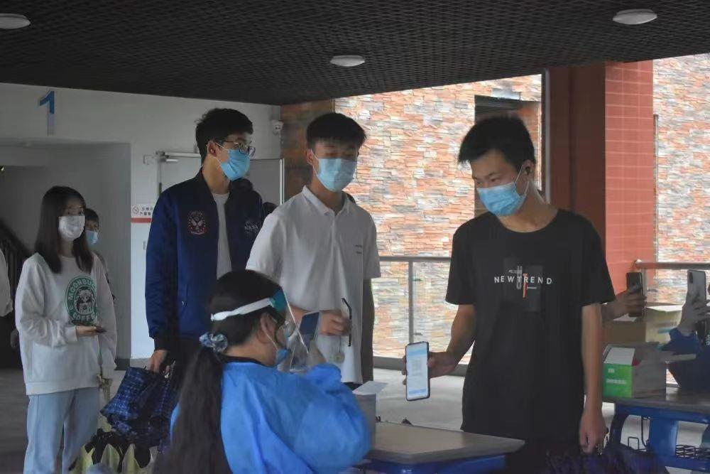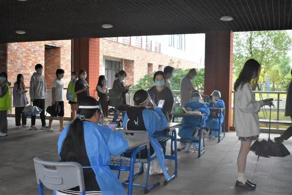 在检测的入口排队处,核酸检测点位的引导处,以及检测出口处,都有我系志愿者们辛勤忙碌的身影。他们时刻提醒同学们保持间距有序进场并指示队伍前往几号站口提前打开健康码。用责任与耐心解答同学的问题,并维持着核酸检测秩序。检测过程中,无论是面对突然降温的阴雨天气,还是维持秩序来回奔波的辛劳,志愿者们始终没有一句怨言,认真完成自己的志愿服务工作,坚守在“疫”线,温暖着“疫”线。从登记到完成采样,顺利完成一次核酸采样只需几十秒。对于每一位“大白”而言,真正的考验并不在业务,而是不间断的抬手示意、拆开采样器、采集咽拭子,放入试管掰断、一人一手消,虽然是简单的几个动作,但在短短几个小时内连续不断地重复数百次,也是不小的体力活。在我系志愿者和医护人员的共同努力下,此次核酸检测工作圆满完成!