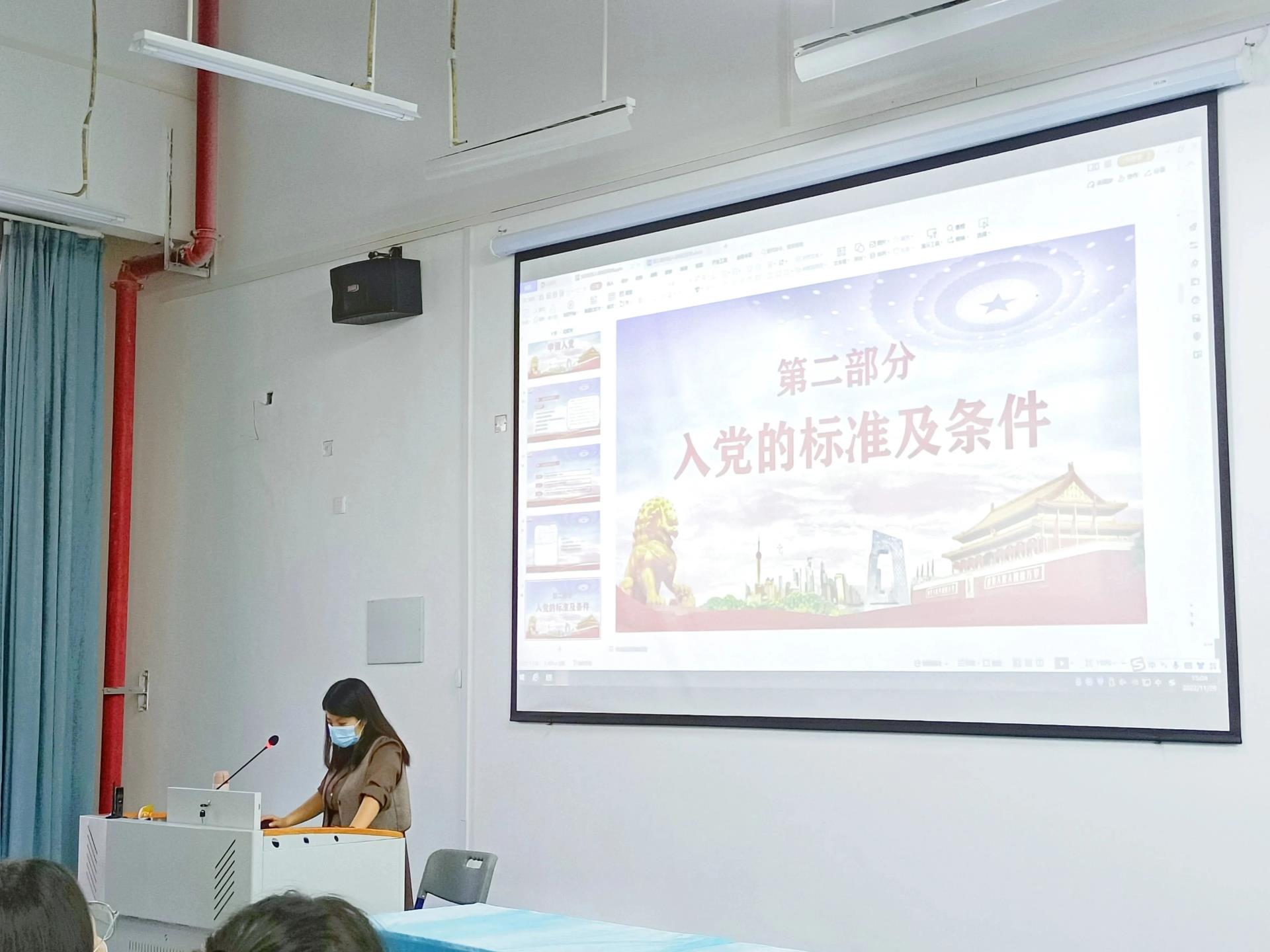 为了让入党积极分子更加了解中国共产党,进行短期集中培训,通过培训使入党积极分子懂得党的基本知识,端正入党动机,提高对党的认识,明确党员应具备的条件,树立正确的人生观价值观,初步确立为共产主义事业奋斗的信念。2022年11月29日下午在化工楼101教室开展入党积极分子培训班第二讲——《入党条件与程序》,本次党课培训由化学工程系组织员杨敏老师主讲。