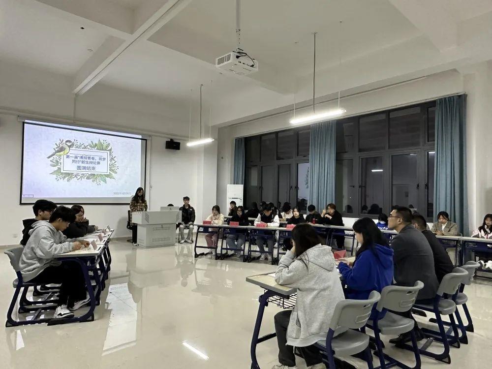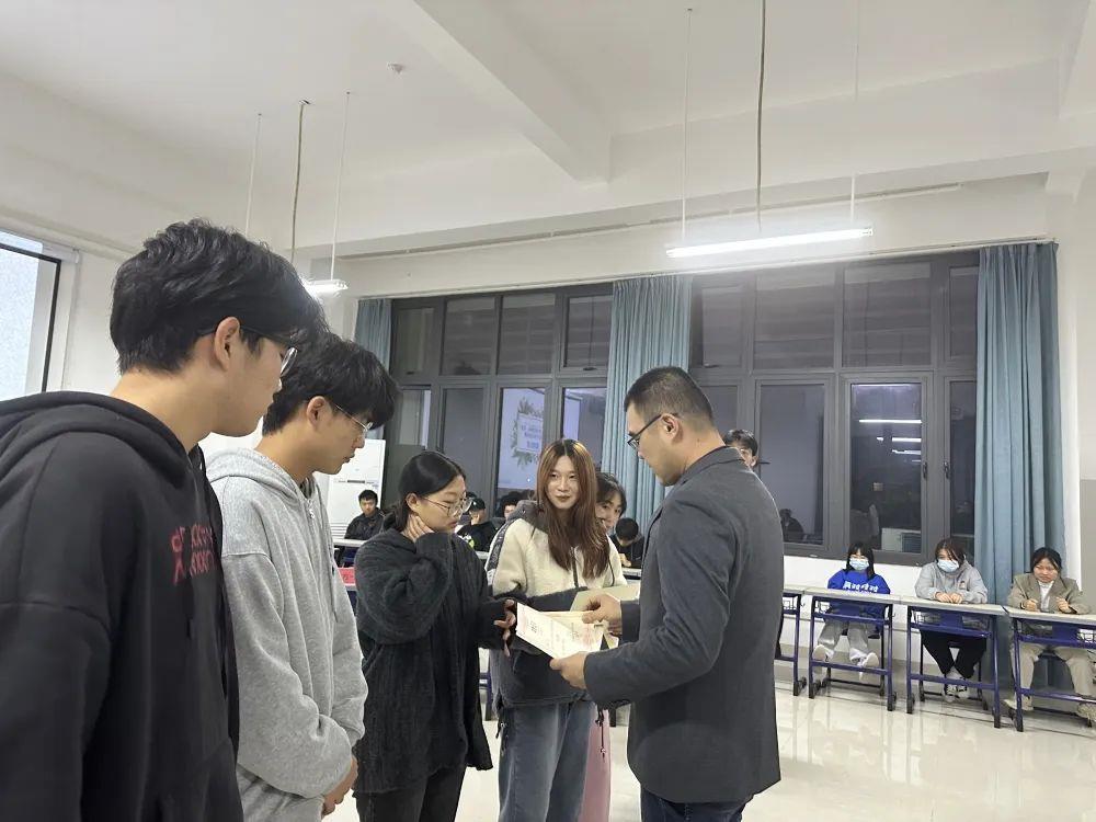 经过激烈的角逐,本次辩论决赛以正方代表队的胜利告终。最后,由辅导员蔡梦杭对本次辩论赛做了精彩的总结,她首先肯定了各位辩手的勇气可嘉,激烈的辩论让人意犹未尽,也指出了一些小问题,例如辩论前先吃透辩题,应有理有据的辩论,还应该遵守辩论规则,把控好时间。最终,由党总支副书记黄林毅给获胜队伍进行颁奖合影。