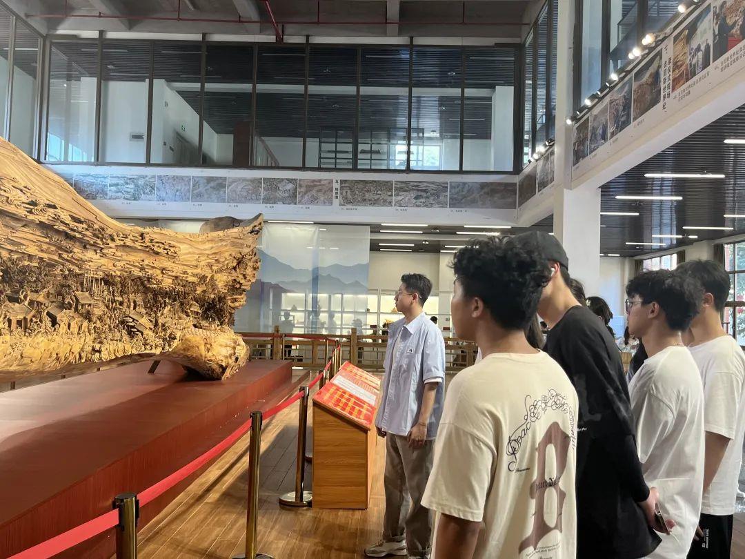 随后同学们又参观了精品展览区、透过精雕细琢的木雕艺术品,听着工作人员介绍作品的创作历程、构思、技法等,大家纷纷惊叹大师的能工巧艺,深刻感受着国家级非遗项目莆田木雕代表性传承人郑春辉的艺术魅力。郑春晖不仅是一个优秀的艺术家,更是一个传承者和推广者,他一直致力于将莆田木雕这一国家级非遗项目传承下去,并让更多人了解和喜欢这项传统艺术。