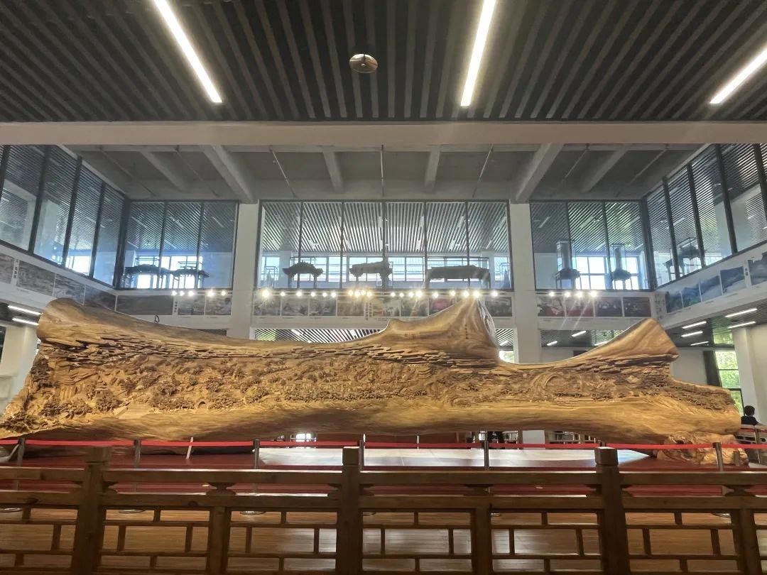 同学们在解说员的引导下走进一楼展厅,迎面遇见的是展馆的重头戏——《清明上河图》。同学们按规定有序地站成一个圈,纷纷发出惊叹的声音。这幅画融合了雕刻技艺的精华,包括镂、透、浮雕和莆田精微透雕等,生动的表现了宋朝都城汴京的繁荣景象。整幅画面用雕工精湛的手艺呈现,人物形象栩栩如生,具有极强的立体感和分层明确的特点。从城外到城里,汴京两侧的建筑物井然有序,街上行人车马穿梭,人物神态栩栩如生,具有惟妙惟肖的艺术表现,非常精彩。据悉,《清明上河图》是一件由巨型香樟木雕刻而成的大型作品,花费四年多时间完成,因此被载入吉尼斯世界纪录,成为世界上最长的木雕之一。这让同学们更加惊叹,大开眼界。
