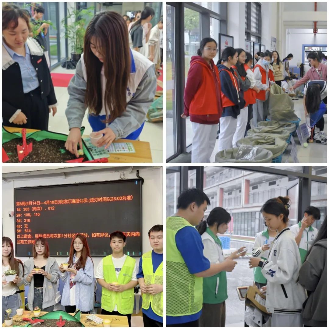 垃圾分类活动现场,兰苑的同学们通过参与垃圾分类(1KG)与旧物回收(旧衣服等),兑换可爱的多肉盆栽和主题环保香片,种下环保希望,将绿色带回宿舍。同时,通过旧物回收,他们不仅减少了资源的浪费,还为那些需要帮助的人提供了一份温暖和关爱。这样的活动不仅仅是一次简单的兑换,更是一次对环保意识的深入教育。