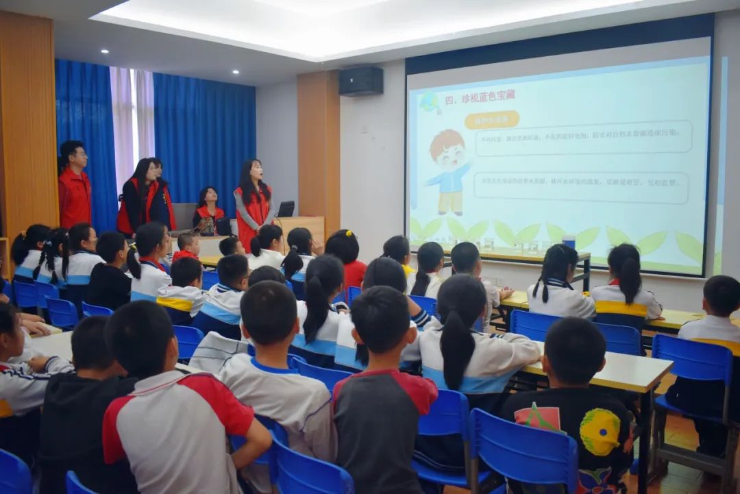 “3月22日世界水日!”孩子们用响亮的声音回应着课堂“暗号”。在涵江区萩芦双亭小学,我系“河小禹”文明实践队开展了一场别开生面的节水路演活动。实践队员们精心准备了课程,通过深入浅出的讲解、妙趣横生的实验、气氛热烈的互动,让孩子们在轻松愉快的氛围中学习水知识。