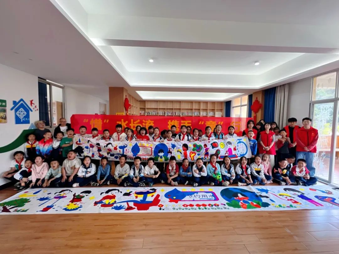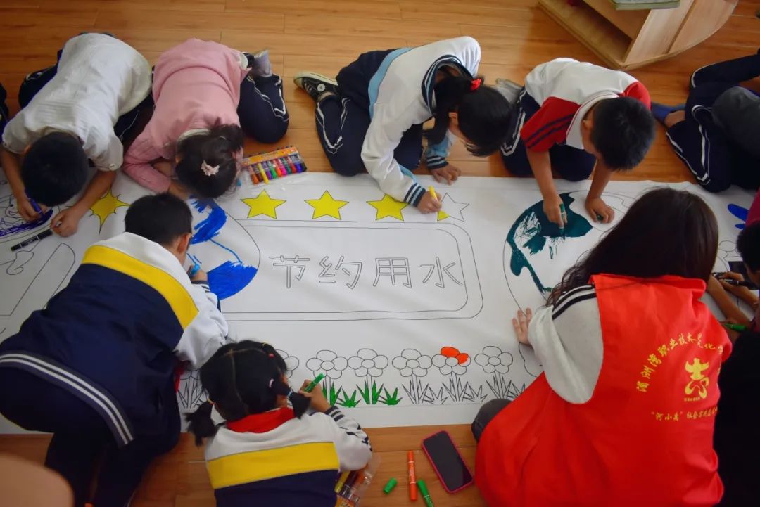 为加深孩子们对水资源的认识,实践队员们还引导大家共同投入到绘制节约用水长画的创作中。通过鲜艳的色彩,孩子们传递出了自己对节水爱水的理解,切实激发了他们保护水资源的意识和责任感。