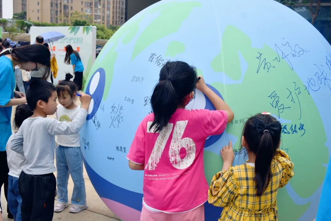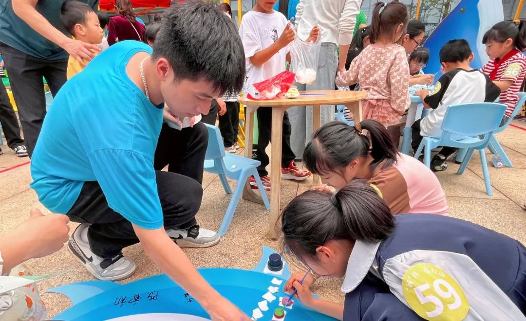“水变色了!好神奇!”在节水节能科普摊位,水变色污染实验吸引了不少小朋友驻足观看,他们专注地听湄职院“河小禹”志愿服务队讲解水域生态治理知识并动手参与。摊位的另一边,同行的家长和孩子们一起进行环保倡议签名,玩转节能减排答题大转盘和进行环保主题绘画。
