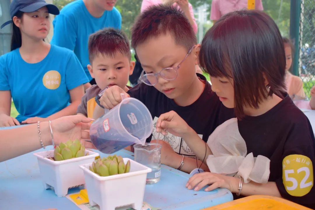 本次活动选聘了涵江区第一届“小小河长”,以学习木兰溪治理理念、认领一段河流、讲一段历史故事等方式激发青少年保护木兰溪的责任感和使命感。活动现场以“实践+志愿”体验模式,围绕水资源保护、生态环境治理设置4大主题共9个志愿服务摊位,为少年宫师生提供环保科普、环保实践系列志愿服务,吸引近百名家长儿童参加。