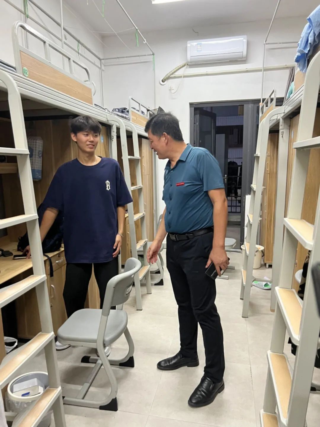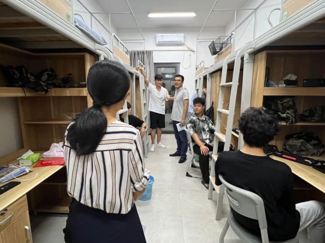 在走访过程中,学院领导们亲切地与新生们交谈,询问他们的入学感受、宿舍安置情况等,详细了解了宿舍设施和配套。