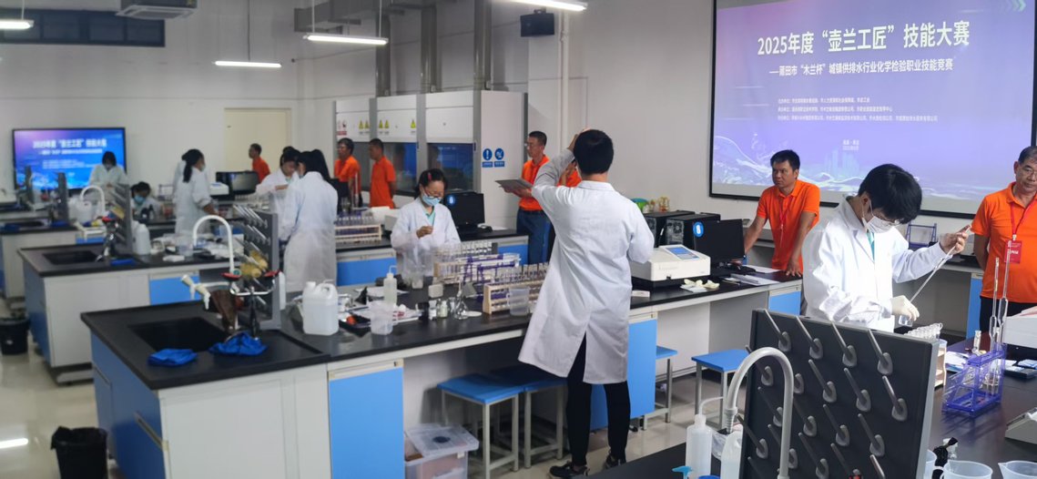 9月18日至19日,莆田市首个市级城镇供排水行业化学检验专项赛事——“木兰杯”供排水行业技能竞赛在湄洲湾职业技术学院化学工程系成功举办。本次赛事深度衔接“壶兰工匠”培育计划,由市住建局、市人社局、市总工会联合主办,湄洲湾职业技术学院、莆田市木兰投资集团有限公司、市职业技能鉴定指导中心“政企校”协同承办,填补本地供排水行业专项技能竞技空白。赛事集结全市43名技术能手,搭建起“比技能、强本领、育人才”的专业平台。