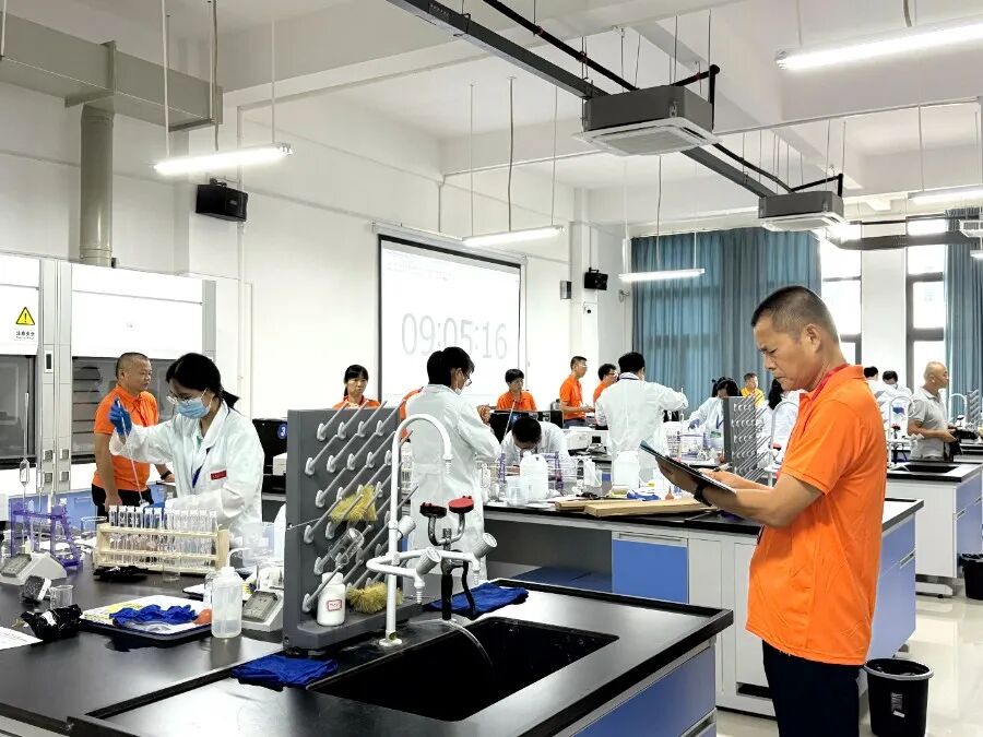 9月19日的实操竞赛环节,志愿者们深入实验室,协助裁判完成样品分发、耗材准备、设备调试等辅助任务。他们灵活运用课堂所学的化学检验技能,帮助选手快速适应实验环境与操作流程,有效保障了实操环节的顺利推进,充分体现了“专业对口、以赛促学、校企联动”的服务理念。