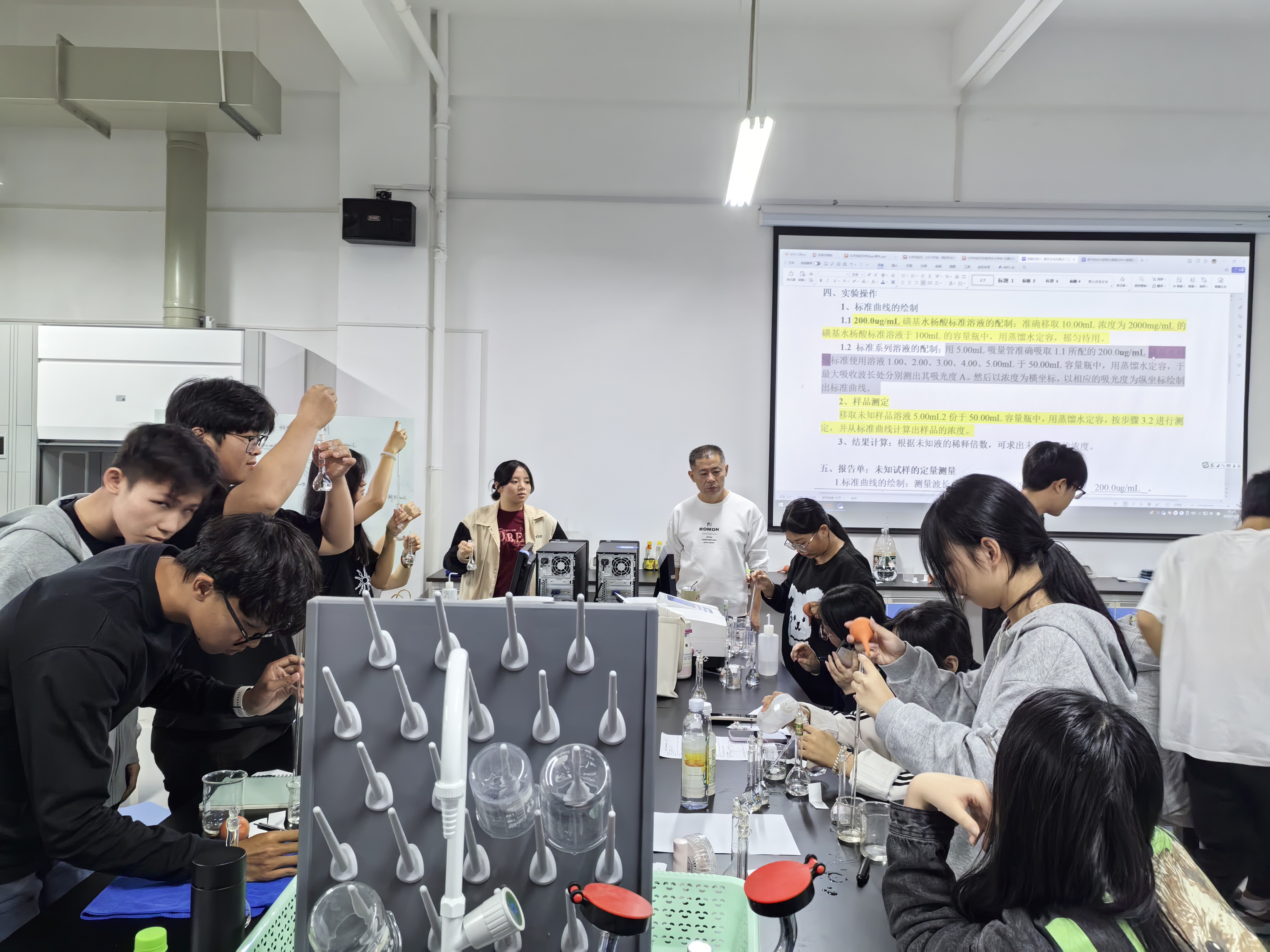 实操训练则依托系内专业实验室,配备高效液相色谱仪、原子吸收分光光度计、紫外可见分光光度计等先进检验设备,以“真实检验任务”为导向,学生分组进行样品前处理、仪器操作、数据记录与结果分析等全流程实操训练。指导教师全程巡回指导,针对操作难点逐一示范讲解,及时纠正不规范操作,确保每位学生熟练掌握规范操作技能,培养严谨的实验态度和精准的数据分析能力。