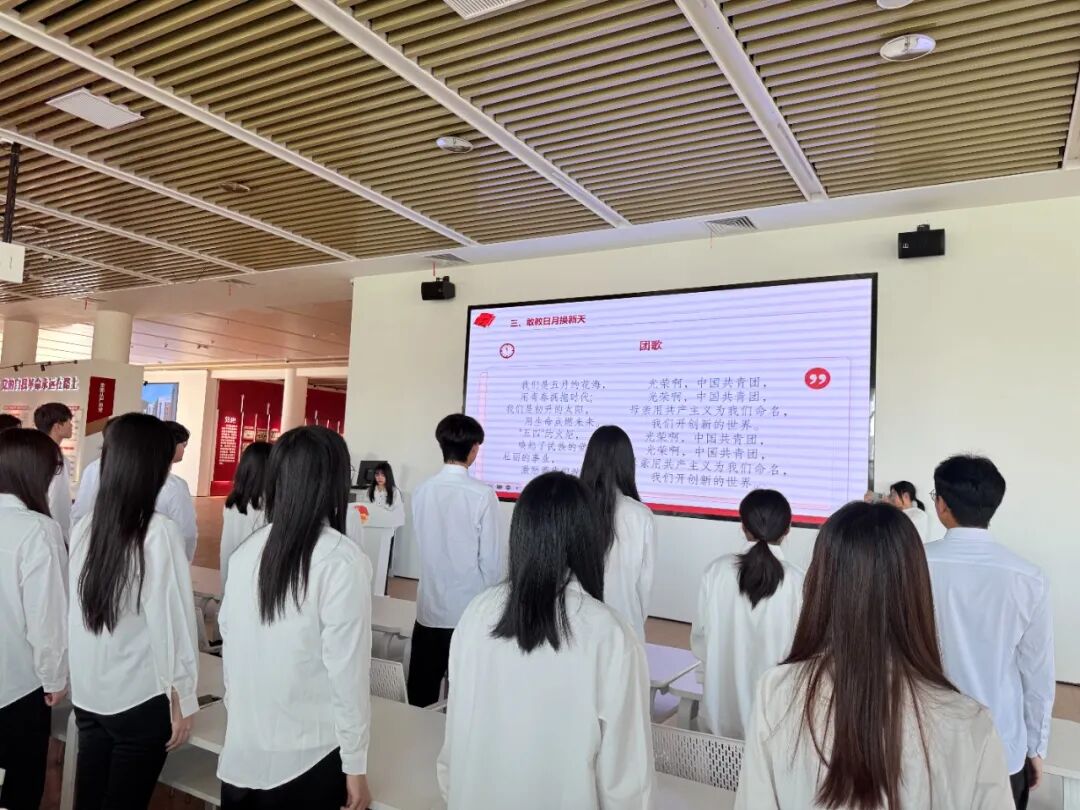 仪式最后,全体人员共同奏唱团歌《光荣啊,中国共青团》。在激昂嘹亮的歌声中,入团仪式圆满落下帷幕。