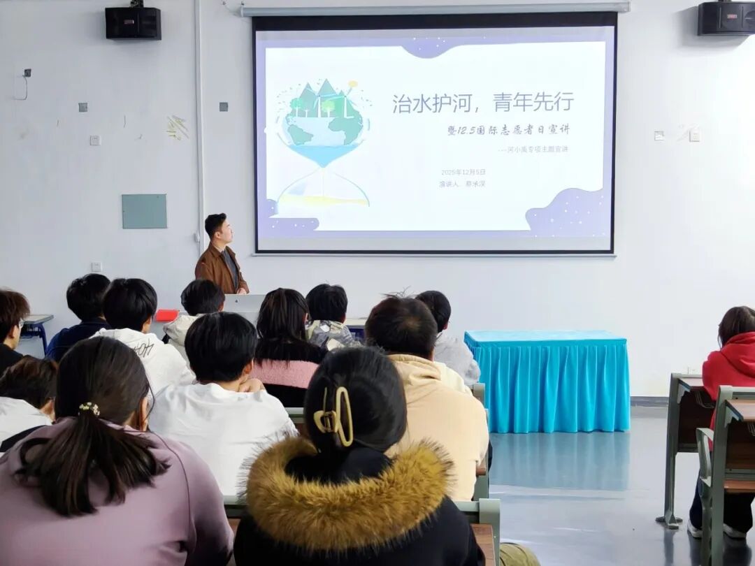 为深入学习贯彻党的二十届四中全会精神,增强青年学子的志愿服务意识与水生态环境保护责任感,我系以第四十个“国际志愿者日”为契机,组织举办“三色河小禹”社会实践队专项宣讲活动。本次活动由系分团委书记蔡承淏主讲,将党的二十届四中全会精神学习宣传与节水护河志愿实践相结合,引导青年学子积极投身志愿服务,以实际行动服务社会、奉献青春。