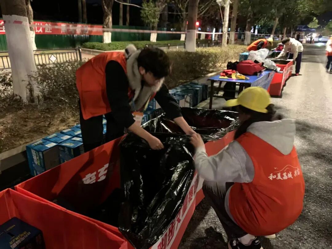 凌晨4点,夜色尚未褪去,志愿者们已整装待发。他们身着红色志愿服、头戴黄色帽子,成为清晨街头一道亮丽而温暖的风景线。尽管早起困意犹存,但每个人脸上都洋溢着饱满的热情与笑容。抵达赛场后,志愿者们迅速投入工作,有序搬运物资、布置服务站点,提前分装并整齐摆放饮用水与能量饮料,认真整理服务台面,为赛事顺利开展筑牢了后勤保障基础。