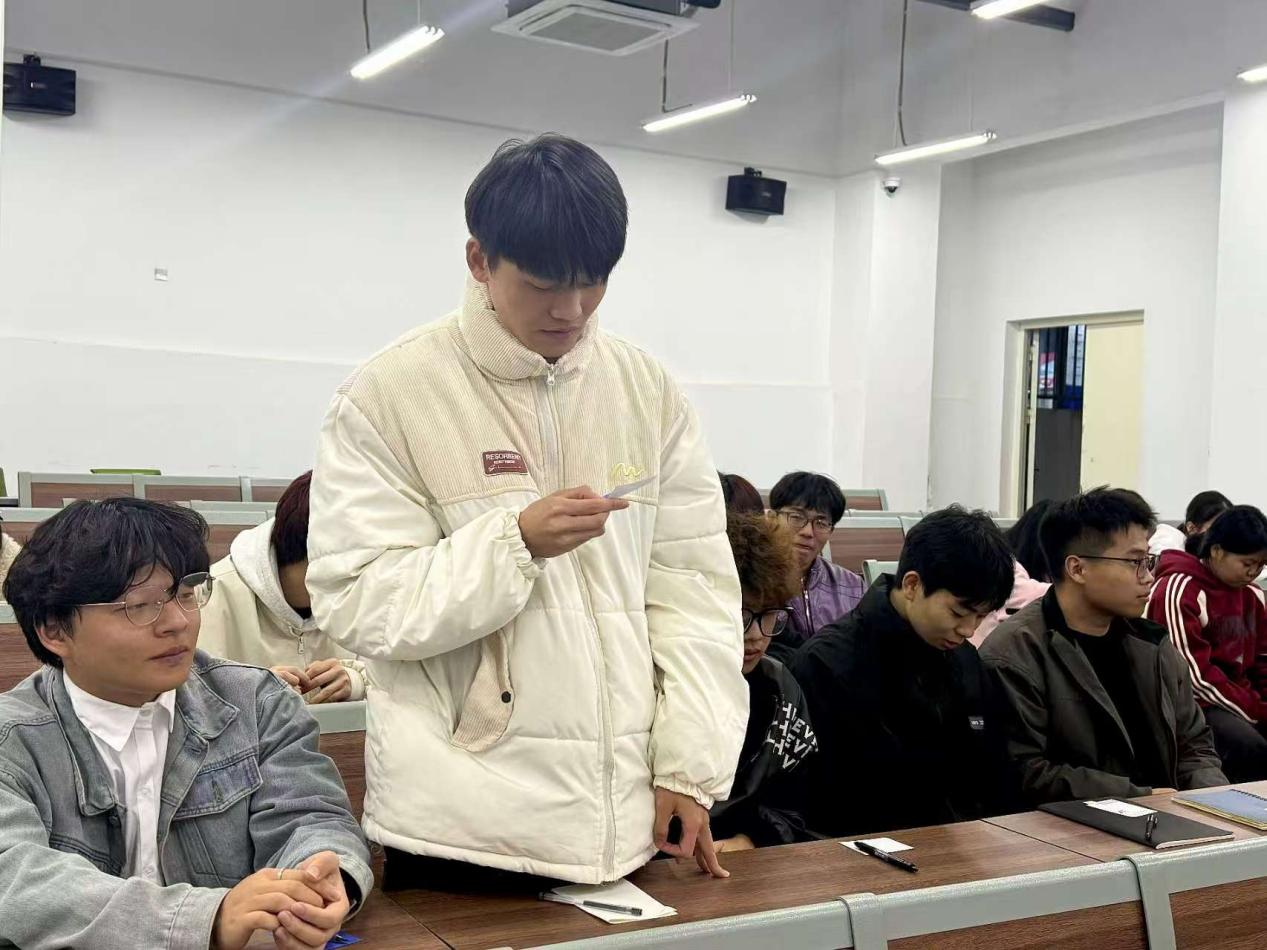 互动环节以“我的‘十五五’规划”主题卡片书写与分享为载体,现场气氛热烈。同学们认真撰写了各自在学业、科研与职业发展方面的目标与愿景,多名代表踊跃发言交流。该环节有效突破了单向传授模式,促进了思想的双向启迪,进一步增强了学生的参与感与方向感,推动大家自觉将个人成长轨迹与国家战略进程同频共振。