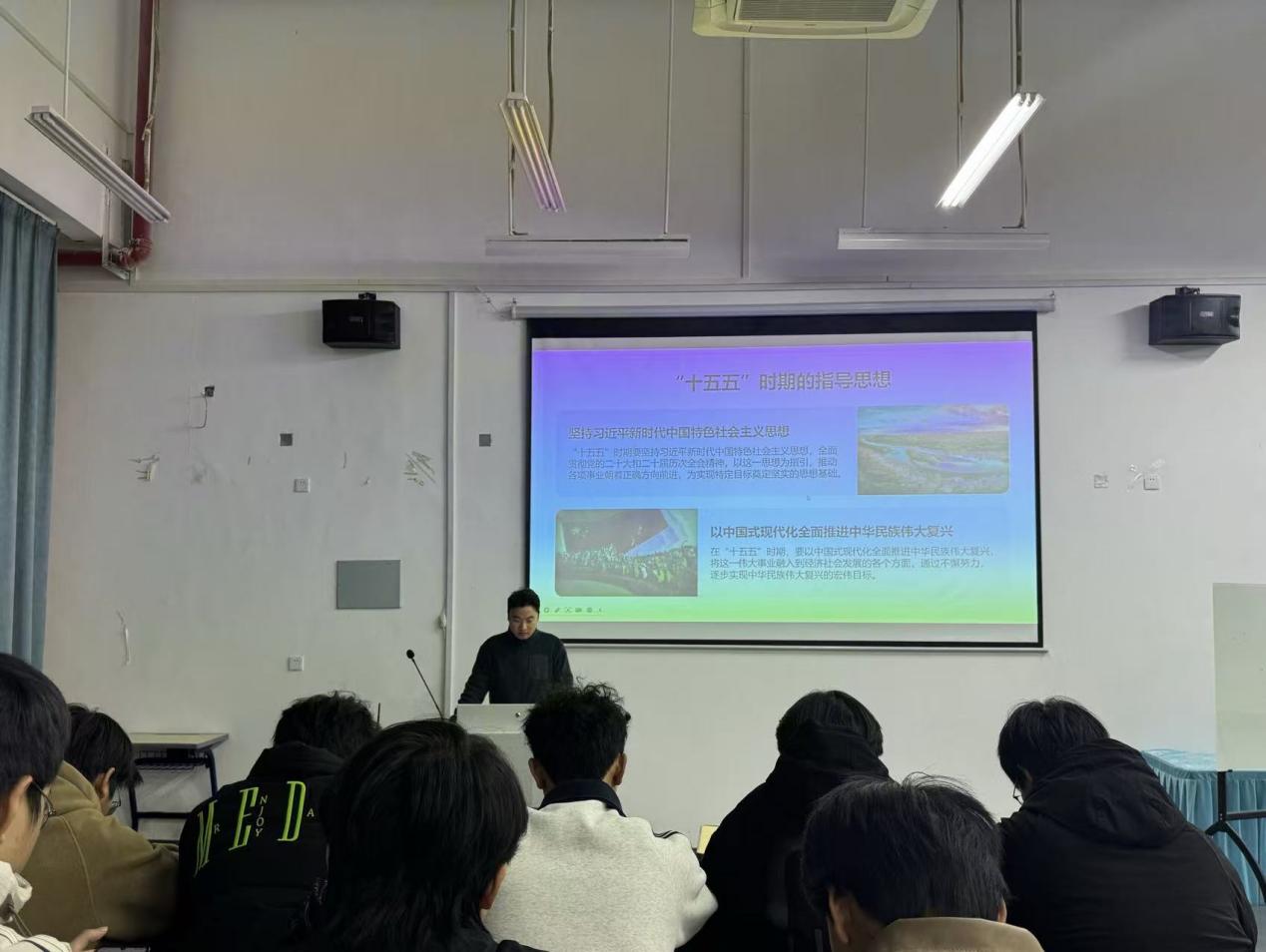 活动中,主讲人蔡承淏老师系统解读了“十五五”时期国家发展的总体方向与战略布局。他从全会的历史方位与全局意义入手,深入阐释了全会精神的核心要义,并具体剖析了中国式现代化与化工领域发展的内在联系。讲解重点聚焦于“十五五”期间的战略任务,特别是食品药品等化工相关行业的发展趋势,结合专业背景分析了青年学子面临的机遇与化工领域的未来赛道,帮助同学们在国家规划与个人发展之间建立起清晰的连接桥梁。