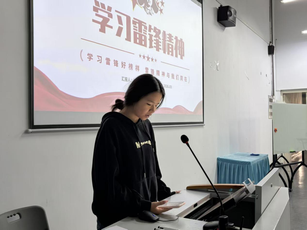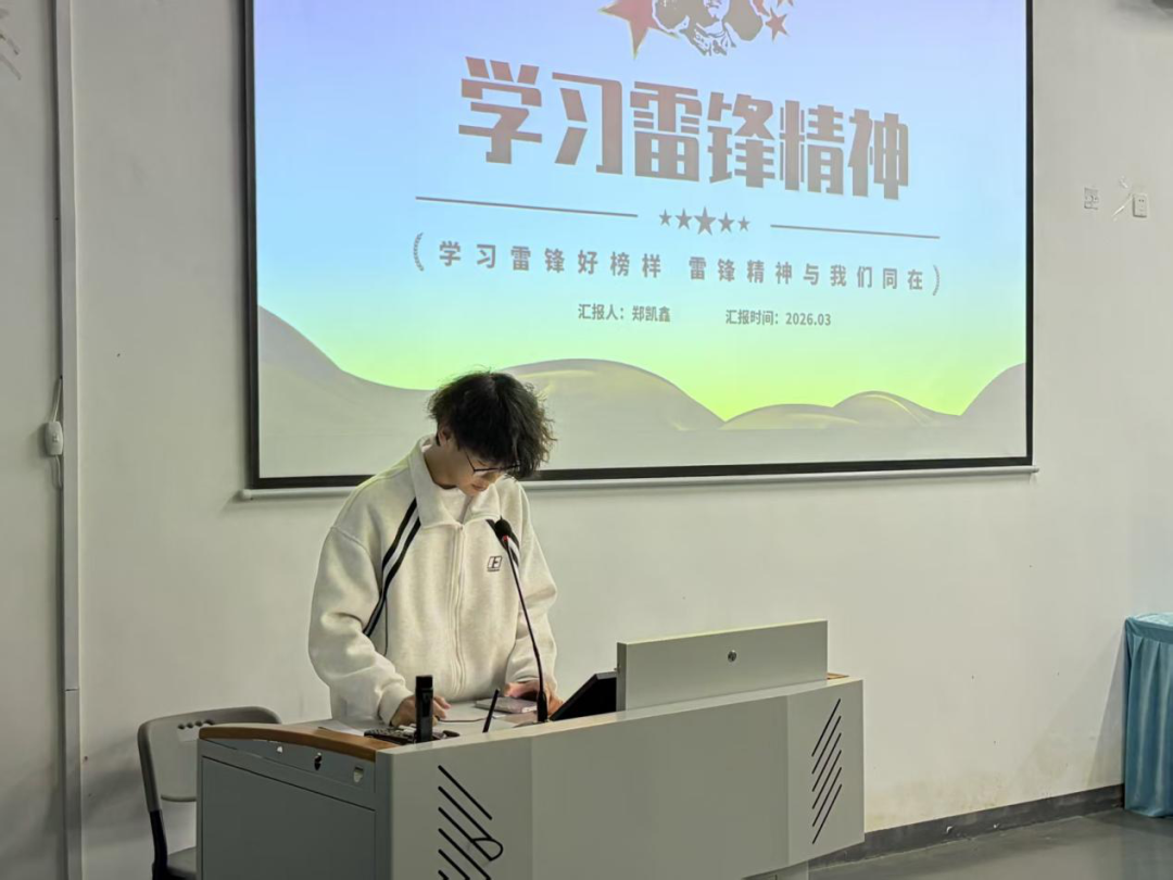 活动伊始,郑凯鑫同学带来主题分享,从四个维度深入剖析雷锋精神的永恒价值。他系统阐述了以全心全意为人民服务为核心,涵盖无私奉献、爱岗敬业、助人为乐、勤俭节约的雷锋精神内涵,并结合新时代背景,阐释了立足本职的敬业担当、乐于助人的共情善意等鲜活表达。他还重点讲解了“螺丝钉精神”与“钉子精神”的深刻意涵,指出践行雷锋精神需从点滴小事做起,做到干一行爱一行、刻苦钻研、主动奉献。