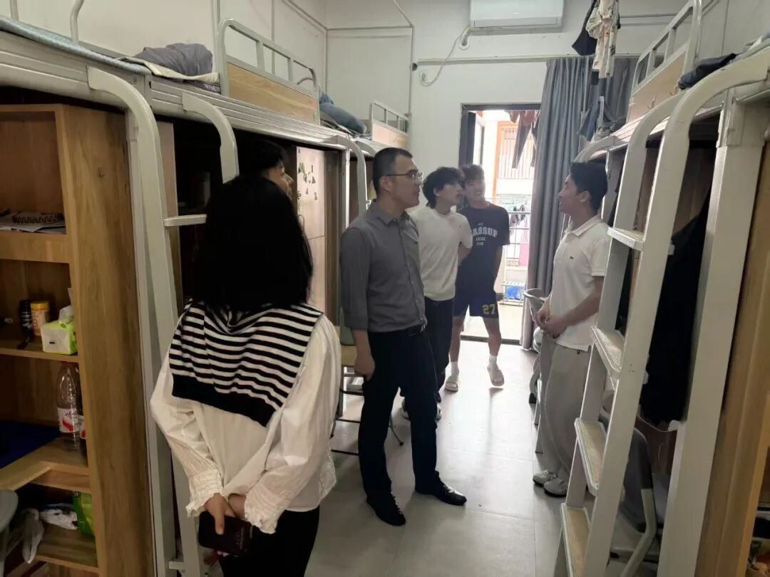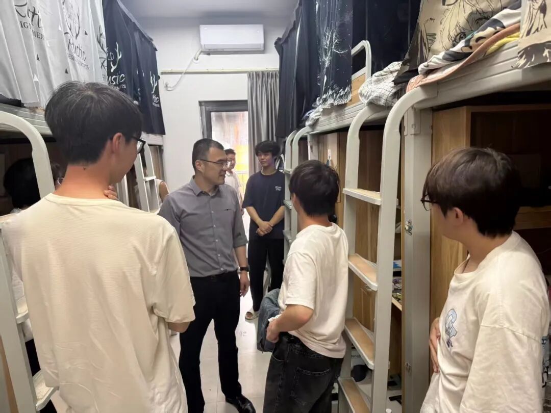 最近课程压力大不大?”“室友间相处还融洽吗?”每到一处,黄林毅副书记都与同学们亲切攀谈,细致询问同学们近期的课业进度与校园学习生活情况。对于大二年级学生,他重点关注了职业规划与实习准备情况,鼓励大家主动作为、把握机会。