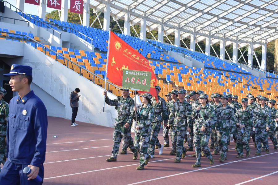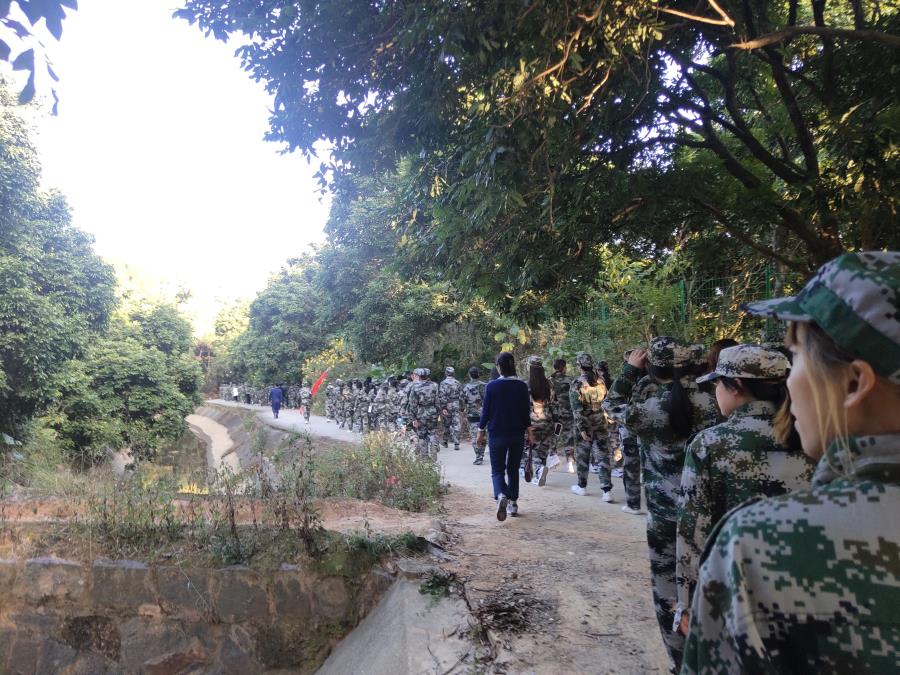 本次拉练从400米运动场(起始点:100米跑道终点处)→室内体育馆→学院次校门(往西)→荔涵大道→妈祖庙→学院后山→松西村(环绕校园外部一周)→学院次校门→湄音广场→田径运动场,全场约五公里。