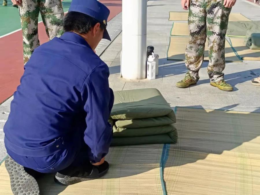 为了进一步提高军训的质量,月 日辅导员、班主任、教官来到了此次参训学子的宿舍内,对大家的内务规范进行指导。