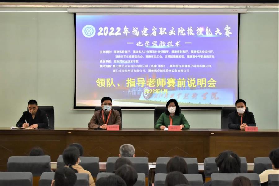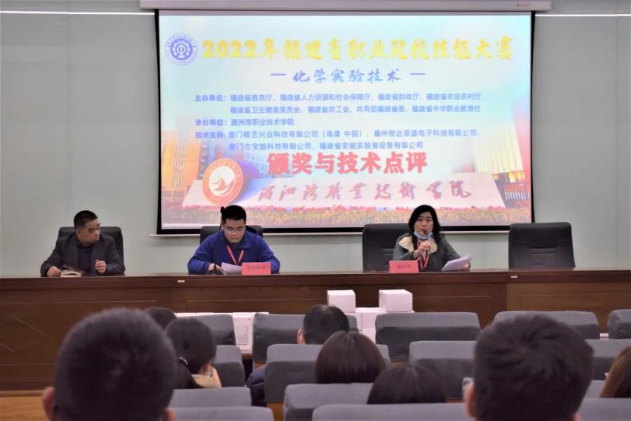 1月7日—9日,由福建省教育厅、福建省人力资源和社会保障厅、福建省财政厅、福建省农业农村厅、福建省卫生健康委员会、福建省总工会、共青团福建省委、福建省中华职业教育社联合主办,湄洲湾职业技术学院承办的2022年福建省职业院校技能大赛化学实验技术赛项在我院新化工楼隆重举行。