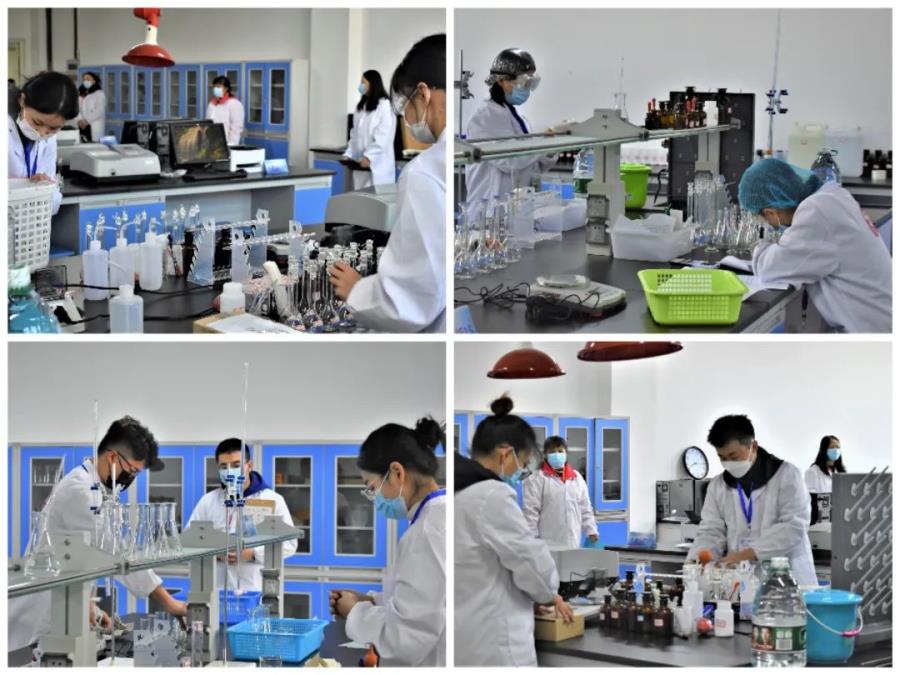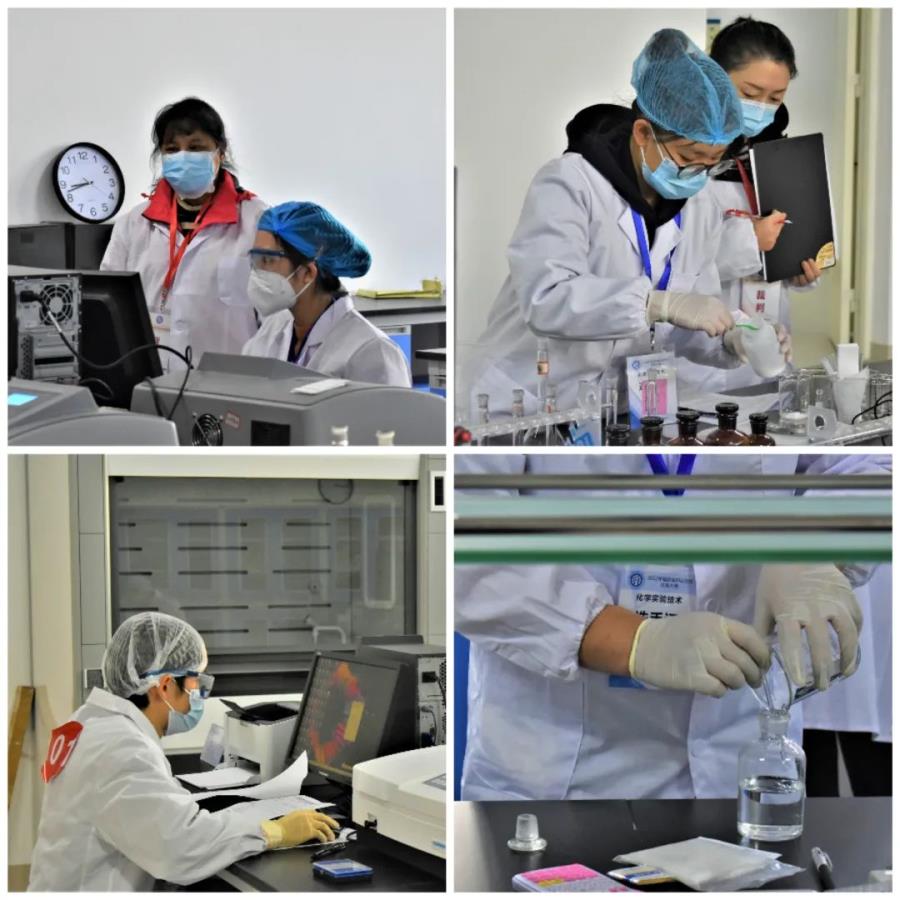 比赛赛程为2天,比赛分化学分析、仪器分析、有机合成三个模块。比赛场上,各参赛选手心无旁骛,精神高度集中,他们在各自的操作台上争分夺秒却又有条不紊的进行着各种精准的操作。裁判们一丝不苟,对选手的每个动作都认真核对确认,他们一站就是几个小时。经过艰苦比拼,所有的选手全部在规定时间内完成比赛。