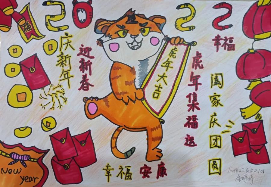 一记晓钟更日辰,雪寒不掩岁时新。2022年新春佳节壬寅虎年将至,化学工程系在此祝大家新年快乐!为迎接新年,化工学子们都纷纷创作,下面一起来看看大家创作的绘画、海报和对联作品吧!