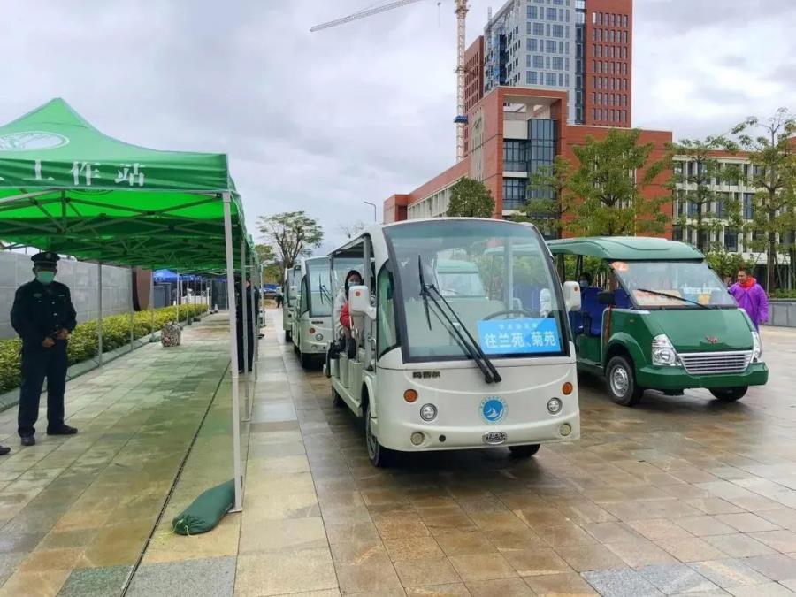 校园内,“小白”“小绿”们组成的电动车“搬运车队”已经等候多时,为确保学生以及行李不受雨淋,学院还提前搭建了雨棚。苑区志愿者、物业保安热情参与返校志愿服务,帮忙引导、搬运行李,将学生一一送往各苑区。“小举动”彰显“大关爱”,不仅保证了学生入校过程井然有序,也让家长普遍感到安心。