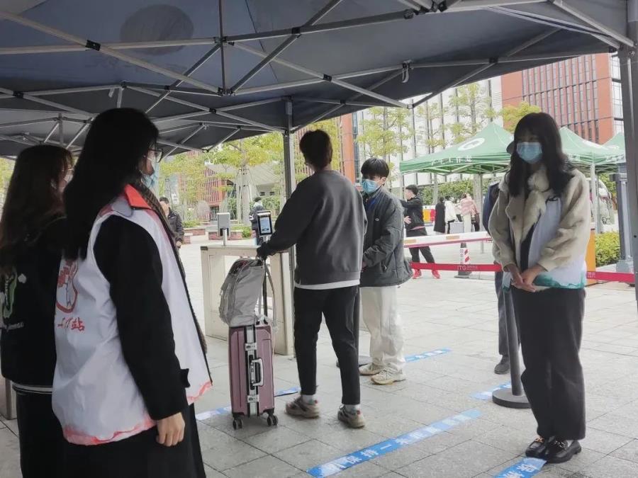 返校学生在工作人员、辅导员、学生志愿者的引导下,完成了体温测量、手部消毒、更换口罩、核验“健康码”“行程码”、核酸检测登记等工作,安全有序进入校园。过了一个寒假,终于归校而来的大家看到熟悉的校园,亲切的老师,可爱的同学们,一定也感到很开心吧!