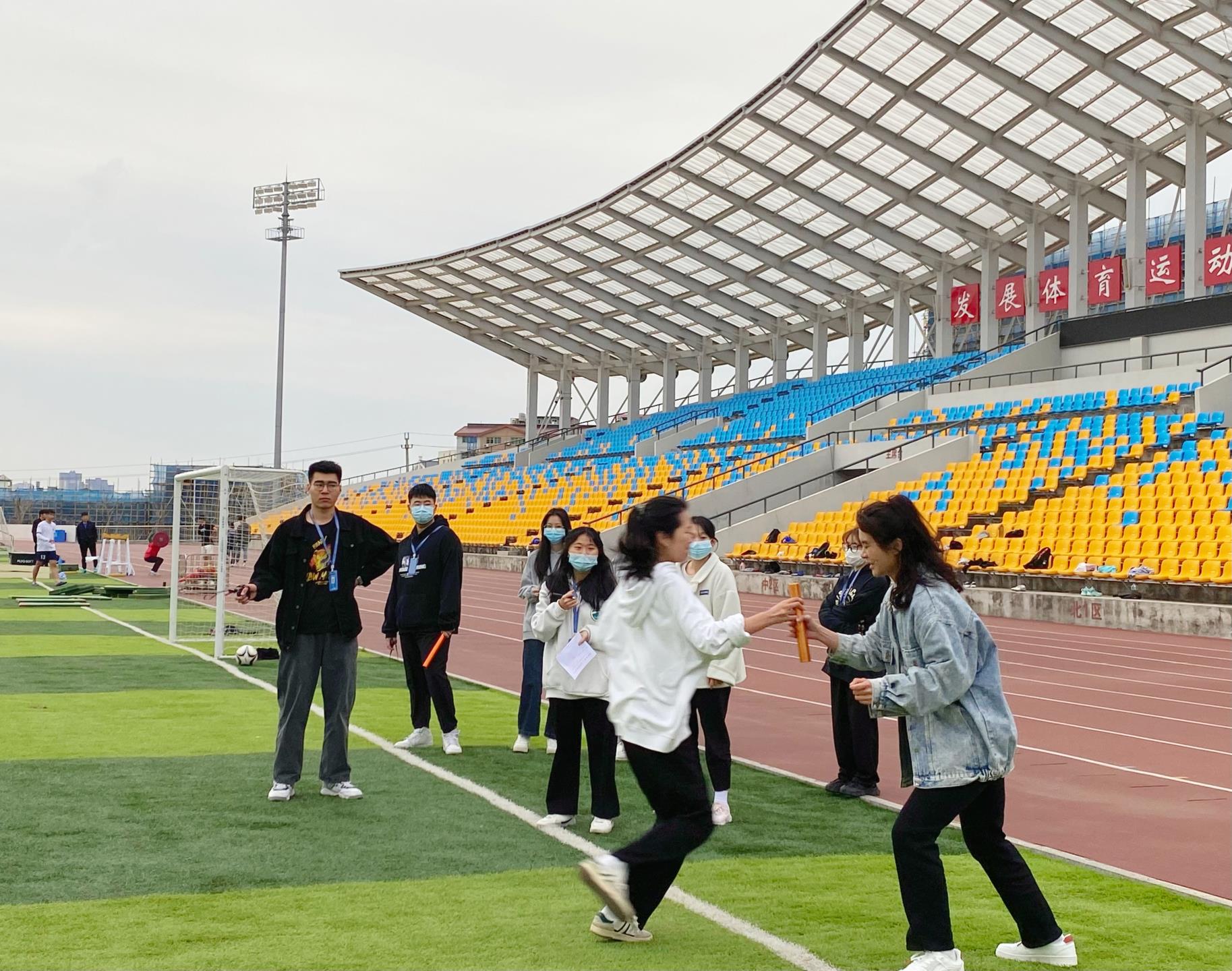 下午时分,蓝天正好,微风轻拂。化工学子们来到大草坪集合,今天要进行的运动是“草坪接力往返跑”比赛。比赛以班级为单位,每个班级派出10名参赛选手,五男五女,参加此次的接力赛。参赛者们在草坪起点等待,待裁判口哨声一响,手持接力棒,奋力朝着草坪的另一端跑去,将手上的接力棒递给队友,接到接力棒的一刻,身体里的胜负欲被彻底激发,于是使出全身协力地在草地上奔跑......疫情封校后在宿舍上网课的半个多月来,大家的户外运动似乎也按下了暂停键,这个契机,让同学们重新奔跑在新鲜空气的操场上,拥抱美好的青春活力!