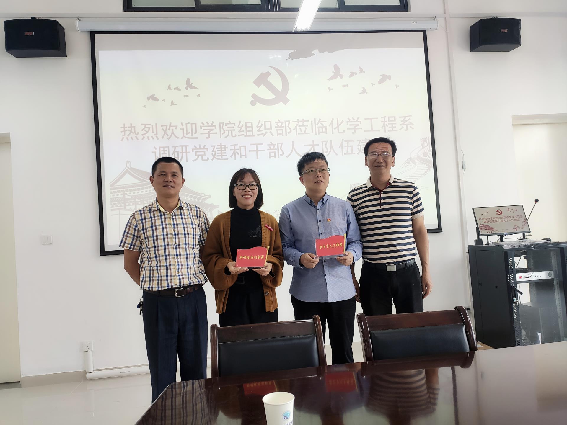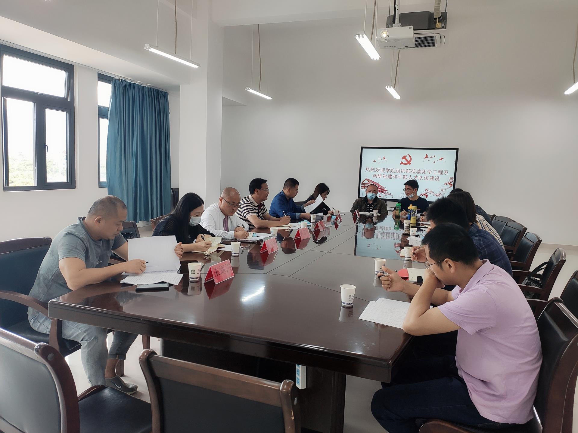 4月15日,学院组织部部长阮春高一行六人莅临化学工程系调研党建和干部人才队伍建设工作开展,会议由化学工程系党总支副书记翁秀琴主持,化学工程主任赖国新、副主任刘开敏及党总支成员、专业主任以及部分教师代表一同参加会议。