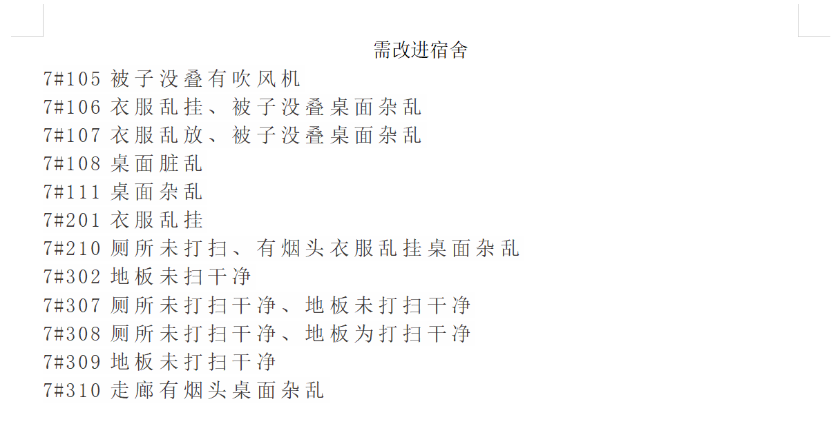 不及格宿舍及原因(女)