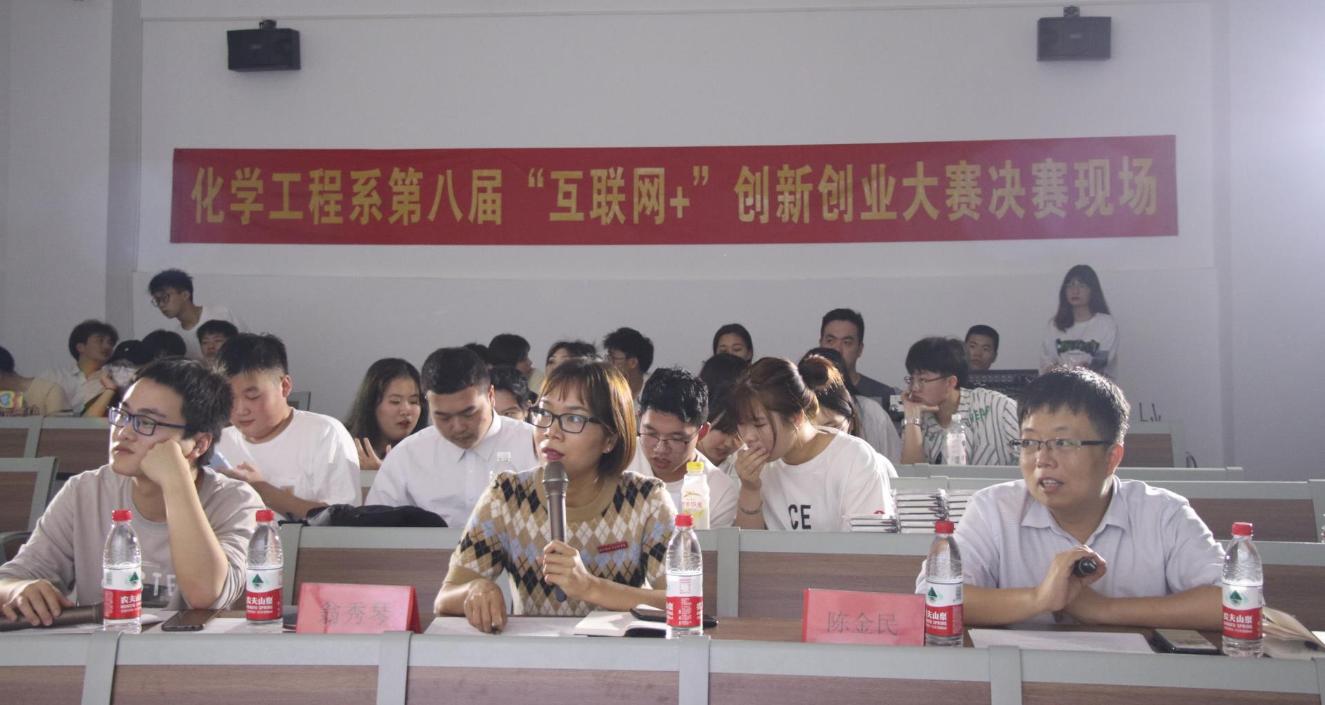 为激发大学生的创造力,培养造就"大众创业、万众创新"的生力军,4月23号晚化学工程系举办第八届“互联网+"大学生创新创业大赛决赛。出席本次决赛的评委有化学工程系党总支副书记翁秀琴、陈金民副教授以及大三创业学生代表胡御泽。