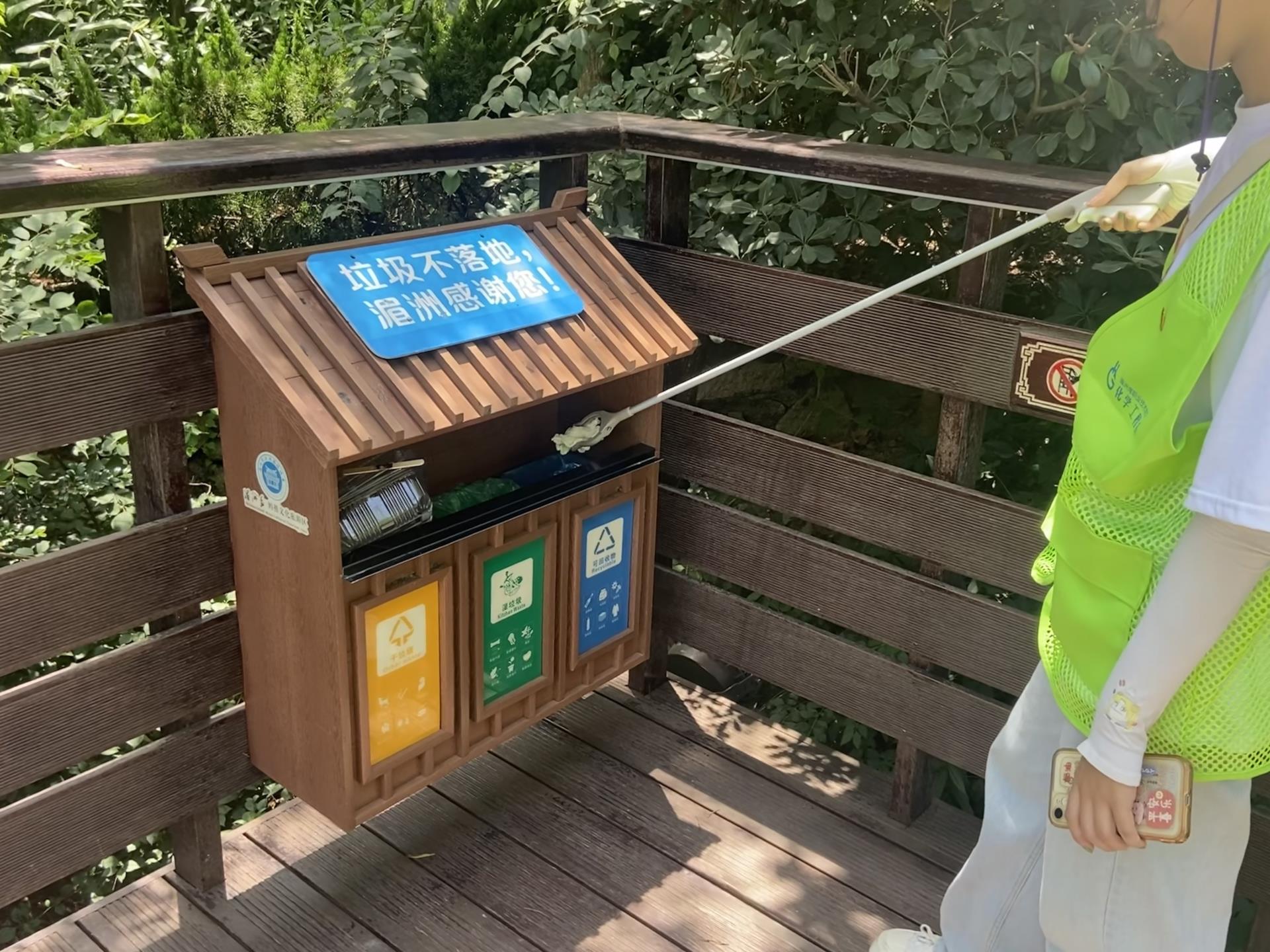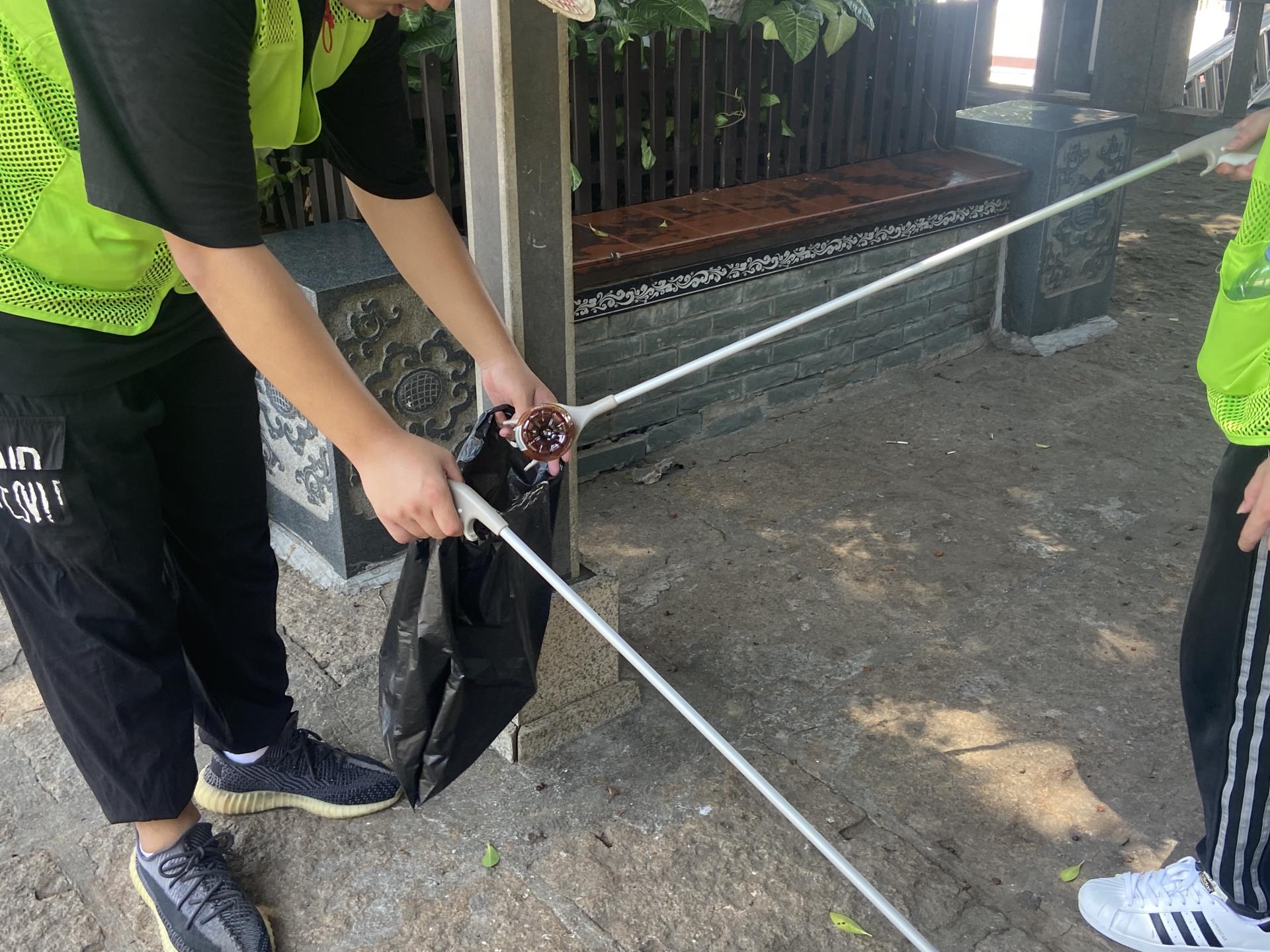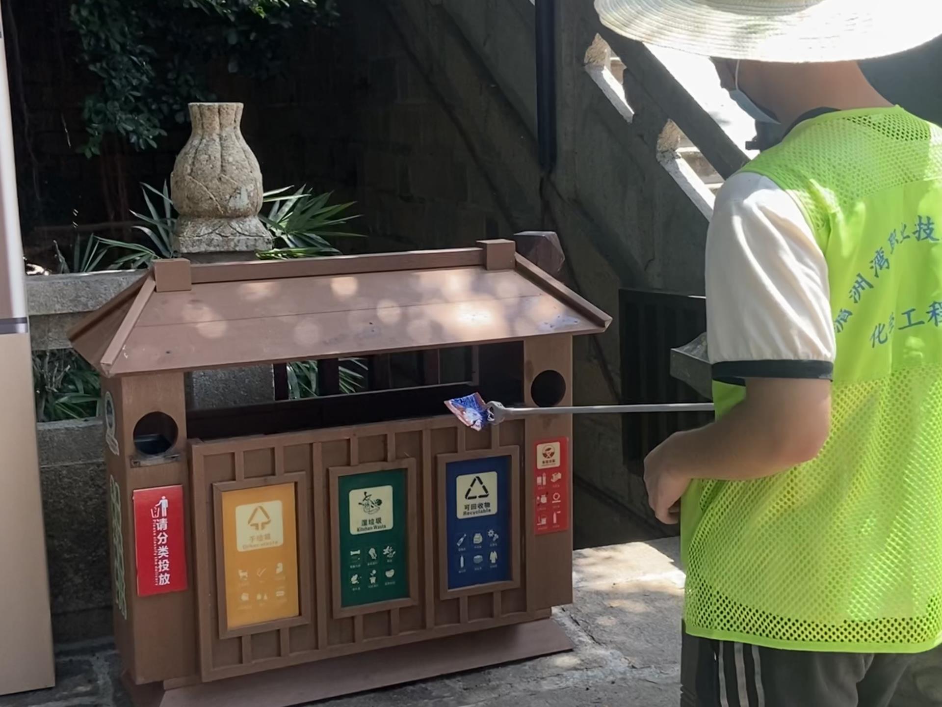 宣传活动之后,罗茂林老师带领实践队成员参观祖庙的古雅建筑:山门、圣旨门、仪门广场、钟鼓楼、太子殿、梳妆楼、升天古迹、天后宫(寝殿)、朝天阁、升天楼,了解妈祖文化。沿途参观过程中,实践队成员手拿垃圾夹、垃圾袋等工具,对沿途周边的环境卫生进行整治打扫。他们用自身的行动,引导群众自觉参与到垃圾分类、生态环境保护队列当中,做环境保护的推动者、践行者。