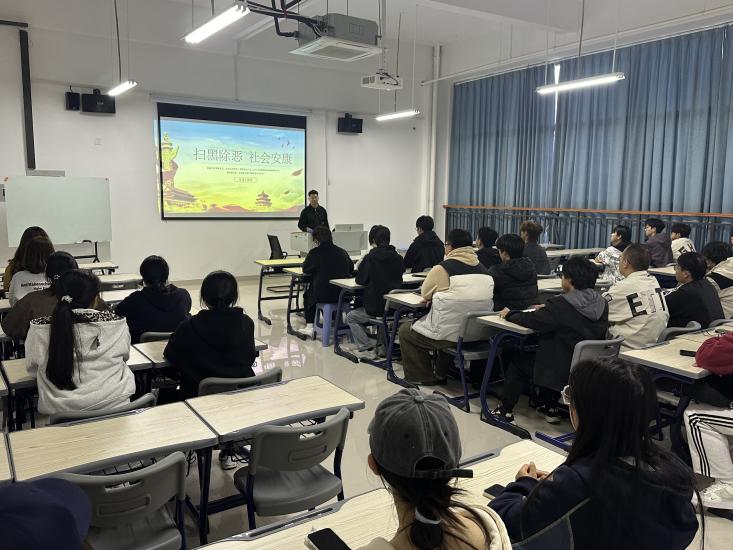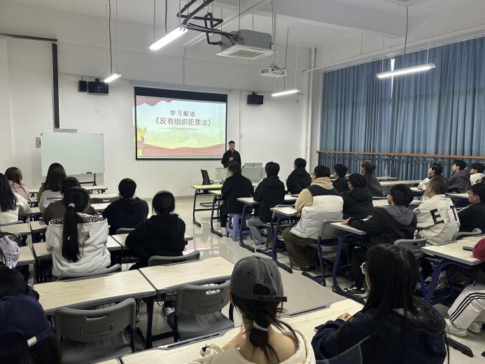本次主题班会旨在深化学生对扫黑除恶斗争长期性、复杂性的认识,重点聚焦学习宣传《中华人民共和国反有组织犯罪法》。各班通过辅导员专题讲解、观看普法宣传片、案例剖析、小组讨论等多种形式,向同学们系统介绍了《中华人民共和国反有组织犯罪法》的出台背景、重要意义、核心内容及亮点条款。班会内容紧密结合校园及学生实际,明确了有组织犯罪、恶势力组织、“软暴力”等法律概念的具体表现,强调了国家依法严厉打击利用网络实施黑恶犯罪、防止未成年人遭受侵害、深挖黑恶势力“保护伞”等方面的坚定决心和法律保障。